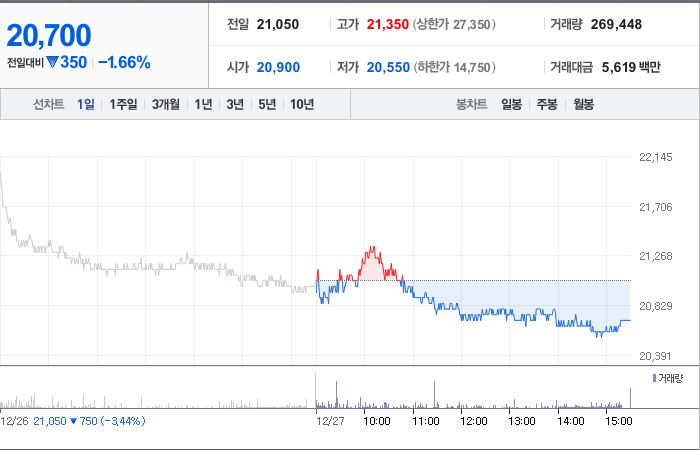 현재 동진쎄미켐의 주가는 21,050원으로, 전일 대비 750원이 하락한 상태입니다. 주주 현황을 살펴보면, 동진홀딩스와 그 외 4인이 총 34.97%의 지분을 보유하고 있습니다. 동진쎄미켐은 반도체 및 관련 장비를 다루는 기업으로, 장중 주가는 21,050원입니다. 이 회사의 시가 총액은 1조643억 원이며, 발행된 주식 수는 51,414,494주입니다. 외국인 보유 비율은 11.47%이며, 장중 거래량은 267,731주에 달했습니다. 동진쎄미켐의 매출액은 10,478억 원에 이릅니다.