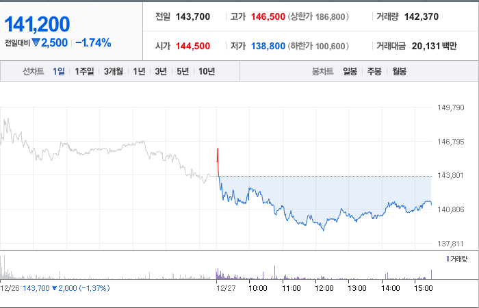레인보우로보틱스의 현재 주가는 143,700원으로, 전일 대비 2,000원이 하락했습니다. 주주 현황을 살펴보면 오준호 씨와 7명의 주주가 총 58.79%의 지분을 보유하고 있습니다. 이 회사는 기계 분야에 속하며, 장중 주가는 143,700원입니다. 레인보우로보틱스의 시가 총액은 2조 7,393억 원이며, 발행된 주식 수는 19,399,858주입니다. 외국인 투자자의 보유 비율은 5.74%에 달하며, 장중 거래량은 210,771주를 기록했습니다. 또한, 회사의 매출액은 97억 원에 이릅니다.