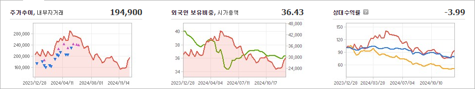 리노공업의 현재 주가는 194,900원으로, 전일 대비 5,100원 하락한 상태입니다. 주주 현황을 살펴보면, 베어링자산운용과 그 외 3인이 총 34.66%의 지분을 보유하고 있습니다. 리노공업은 반도체 및 관련 장비를 전문으로 하는 기업으로, 장중 주가는 194,900원을 기록하고 있습니다. 이 회사의 시가총액은 2조 9,265억 원이며, 발행된 주식 수는 15,242,370주입니다. 외국인 보유 비율은 36.43%이며, 장중 거래량은 92,697주에 달했습니다. 또한, 리노공업의 매출액은 1,948억 원에 이릅니다.