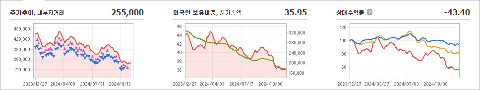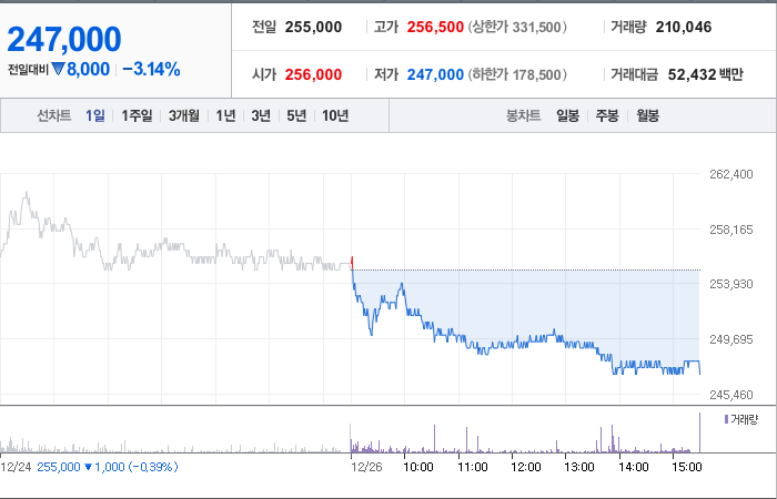 현재 삼성SDI의 주가는 255,000원으로, 전일 대비 1,000원이 하락한 상태입니다. 주주 현황을 살펴보면 삼성전자와 다른 4인이 총 20.50%의 지분을 보유하고 있습니다. 삼성SDI는 전자 장비 및 기기를 전문으로 하는 기업이며, 현재 주가는 255,000원입니다. 이 회사의 시가 총액은 16조9848억 원이고, 발행 주식 수는 68,764,530주에 이릅니다. 외국인 보유 비율은 35.95%이며, 장중 거래량은 202,305주에 달했습니다. 또한, 삼성SDI의 매출액은 128,378억 원에 이릅니다.