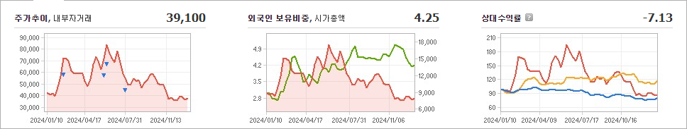 주요 수익원으로는 자회사에 대한 업무 대행 서비스를 통해 발생하는 SSC 수익, 배당 수익, 임대 수익, 그리고 지분 투자를 통한 투자 수익 등이 포함됩니다. 이러한 수익 구조는 동사가 안정적인 재무 기반을 유지하는 데 기여하고 있습니다. 그러나 2024년 9월에는 전년 동기 대비 연결 기준으로 매출액이 25.4% 감소했으며, 영업이익과 당기순이익도 각각 18.5%와 12.8% 감소하는 어려움을 겪었습니다. 이는 전기차 수요의 둔화로 인해 자회사인 솔브레인네트워크의 2차전지 재료 매출이 크게 줄어들면서 이익 규모도 축소된 결과로 분석됩니다.