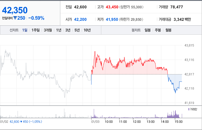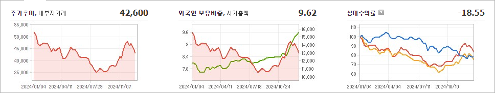 스튜디오드래곤의 현재 주가는 42,600원으로, 전일 대비 450원이 하락했습니다. 주주 현황을 보면 CJ ENM과 기타 3인이 총 54.79%의 지분을 보유하고 있습니다. 이 회사는 미디어 분야에 속하며, 현재 장중 주가는 42,600원입니다. 스튜디오드래곤의 시가총액은 1조 2,730억 원이며, 발행 주식 수는 30,058,498주입니다. 외국인 보유 비율은 9.62%이고, 장중 거래량은 51,591주에 달했습니다. 또한, 스튜디오드래곤은 4,195억 원의 매출을 기록했습니다.