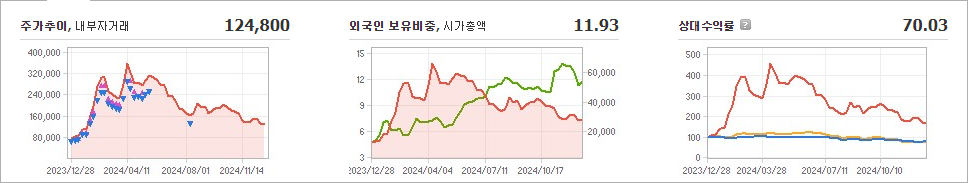 현재 엔켐의 주가는 124,800원으로, 전일 대비 8,200원이 하락한 상태입니다. 주주 현황을 살펴보면 오정강 씨와 다른 두 명이 총 21.63%의 지분을 보유하고 있습니다. 엔켐은 전자 장비 및 기기 분야의 기업으로, 현재 장중 주가는 124,800원입니다. 시가 총액은 2조 5,438억 원이며, 발행된 주식 수는 21,110,225주입니다. 외국인 보유 비율은 11.93%이며, 장중 거래량은 287,487주에 달했습니다. 또한, 엔켐의 매출액은 2,879억 원에 이릅니다.