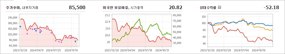 그러나 2024년 9월에는 전년 동기 대비 연결 기준 매출액이 61.3% 감소하였고, 영업이익과 당기순이익 모두 적자 전환하는 어려운 상황에 직면하였습니다. 이러한 상황에도 불구하고, 미국을 중심으로 전기차 시장이 급속히 성장하고 있으며, 이에 따라 배터리에 대한 수요가 급증하고 있습니다. 주요 고객사인 북미 전기차 업체들의 판매 호조에 힘입어 양극재 판매량이 증가하는 긍정적인 흐름도 보이고 있습니다. 회사는 유럽 및 아시아 등 글로벌 시장으로의 진출을 확대하며 고객사를 다변화하는 전략을 추진하고 있으며, 차세대 배터리 소재 개발에 집중 투자하여 기술 경쟁력을 더욱 강화하고 있습니다. 이러한 노력들은 향후 시장에서의 지속 가능한 성장과 경쟁력 확보에 기여할 것으로 기대됩니다.