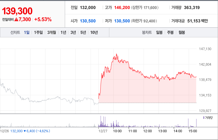 이오테크닉스의 현재 주가는 132,000원으로, 전일 대비 6,400원이 하락했습니다. 주주 현황을 살펴보면 성규동을 포함한 11인이 총 31.09%의 지분을 보유하고 있습니다. 이오테크닉스는 반도체 및 관련 장비를 다루는 기업으로, 장중 주가는 132,000원입니다. 이 회사의 시가총액은 1조 7,161억 원이며, 발행된 주식 수는 12,319,550주입니다. 외국인 보유 비율은 23.06%이며, 장중 거래량은 115,503주에 달했습니다. 최근 매출액은 2,302억 원을 기록했습니다.