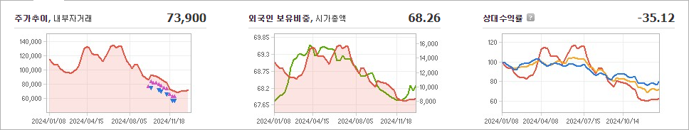 현재 티씨케이의 주가는 73,900원으로, 전일 대비 19.32원 하락했습니다. 주주 현황을 살펴보면, 베어링자산운용과 다른 두 명의 주주가 총 50.39%의 지분을 보유하고 있습니다. 티씨케이는 반도체 및 관련 장비를 전문으로 하는 기업이며, 현재 주가는 73,900원입니다. 이 회사의 시가총액은 8,453억 원이고, 발행된 주식 수는 11,675,000주입니다. 외국인 보유 비중은 68.26%이며, 장중 거래량은 49,366주에 달했습니다. 또한, 티씨케이는 2,030억 원의 매출을 기록했습니다.
