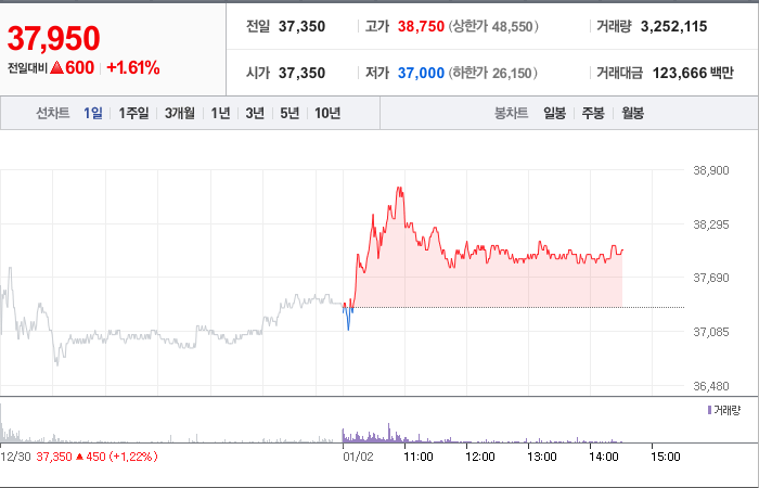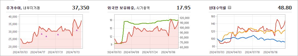 현재 한화오션의 주가는 37,350원으로, 전일 대비 변동이 있음을 나타내고 있습니다. 주주 현황을 살펴보면, 한화에어로스페이스와 그 외 5인이 총 65.77%의 지분을 보유하고 있습니다. 한화오션은 조선업체로, 현재 주가는 37,350원입니다. 이 회사의 시가 총액은 11조 6,131억 원이며, 발행된 주식 수는 306,413,394주입니다. 외국인 투자자의 보유 비율은 17.95%로, 장중 거래량은 3,660,705주에 달했습니다. 또한, 한화오션의 매출액은 75,228억 원에 이릅니다.