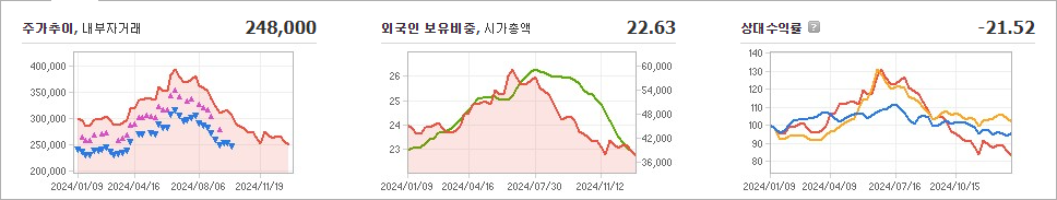 현재 CJ제일제당의 주가는 248,000원으로, 전일 대비 4,500원이 하락했습니다. 주주 현황을 보면 CJ와 그 외 8인이 총 45.51%의 지분을 보유하고 있습니다. CJ제일제당은 식품 산업에 속하는 기업으로, 현재 주가는 248,000원입니다. 이 회사의 시가 총액은 3조 7,786억 원이며, 발행된 주식 수는 15,054,186주입니다. 외국인 투자자들의 보유 비율은 22.63%로, 장중 거래량은 65,535주에 달했습니다. CJ제일제당의 매출액은 218,689억 원에 이릅니다.