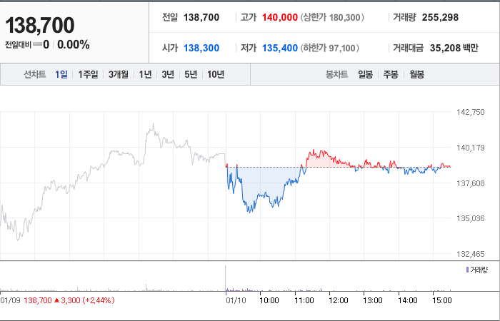 HD현대미포의 현재 주가는 138,700원으로, 전일 대비 변동이 없는 상태입니다. 주주 현황을 보면, 에이치디한국조선해양 및 기타 4인이 총 42.85%의 지분을 보유하고 있습니다. HD현대미포는 조선업에 속하는 기업으로, 장중 기준 주가는 138,700원입니다. 이 회사의 시가 총액은 5조 5,400억 원이며, 발행된 주식 수는 39,942,149주입니다. 외국인이 보유한 주식 비율은 21.77%이며, 장중 거래량은 466,697주에 달했습니다. 또한, HD현대미포의 매출액은 32,072억 원에 이릅니다.