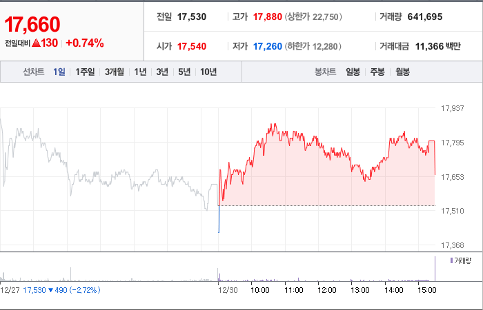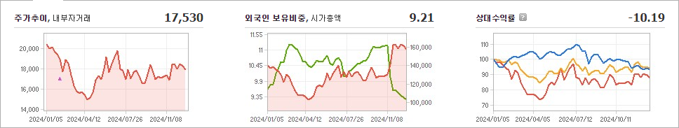 현재 HMM의 주가는 17,530원으로, 전일 대비 490원 하락했습니다. HMM의 주주 현황을 보면, 이 회사의 지분을 33.73% 소유하고 있습니다. HMM은 해상운송업체로, 현재 주가는 17,530원입니다. HMM의 시가총액은 15조 5,592억 원이며, 발행 주식 수는 881,039,496주입니다. 외국인 보유 비율은 9.21%이고, 장중 거래량은 886,708주에 달했습니다. HMM의 매출액은 85,453억 원에 이릅니다.