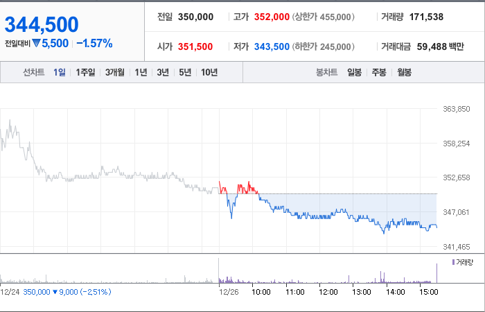 현재 LG에너지솔루션의 주가는 350,000원으로, 전일 대비 9,000원이 하락한 상태입니다. 이 회사의 주주 현황을 살펴보면, 81.84%의 지분을 보유하고 있습니다. LG에너지솔루션은 전자 장비 및 기기 분야에 속하는 기업으로, 현재 주가는 350,000원입니다. 이 회사의 시가총액은 80조 6,130억 원이며, 총 발행 주식 수는 234,000,000주입니다. 외국인 투자자들의 보유 비중은 4.76%이며, 장중 거래량은 172,107주에 달했습니다. 또한, LG에너지솔루션의 매출액은 191,684억 원에 이릅니다.