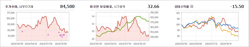 현재 LG전자의 주가는 84,500원으로, 전일 대비 1,200원이 하락한 상태입니다. 주주 현황을 살펴보면 LG와 그 외 2인이 34.35%의 지분을 보유하고 있습니다. LG전자는 내구 소비재 분야의 기업으로, 현재 주가는 84,500원입니다. 회사의 시가 총액은 13조 6,646억 원이며, 총 발행 주식 수는 163,647,814주입니다. 외국인 투자자의 보유 비중은 32.66%이며, 장중 거래량은 292,642주에 달했습니다. 또한, LG전자의 매출액은 649,667억 원에 이릅니다.