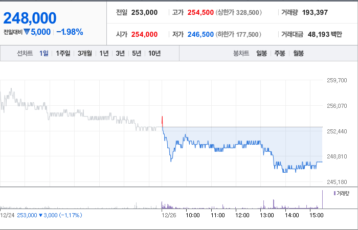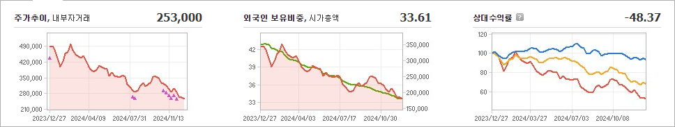 현재 LG화학의 주가는 253,000원으로, 전일 대비 3,000원 하락했습니다. 주주 현황을 살펴보면 LG(외 1인)가 34.07%의 지분을 보유하고 있습니다. LG화학은 화학 산업에 속하는 기업으로, 현재 주가는 253,000원입니다. 이 회사의 시가총액은 17조 5,069억 원이며, 발행된 주식 수는 70,592,343주입니다. 외국인의 보유 비율은 33.61%로 나타나며, 장중 거래량은 115,503주에 달했습니다. 또한, LG화학의 매출액은 365,795억 원에 이릅니다.