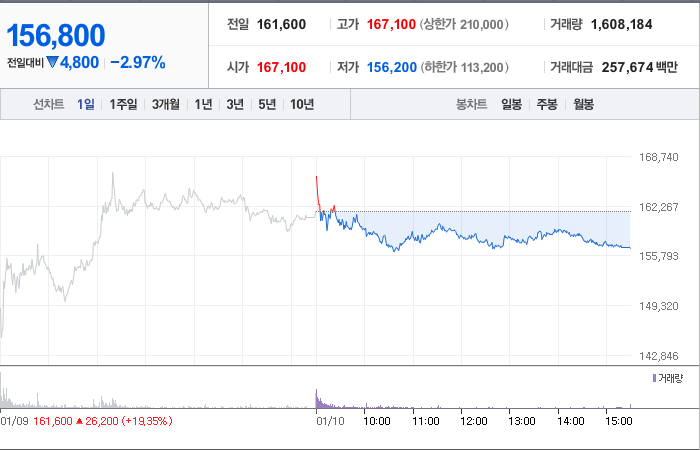 현재 SKC의 주가는 161,600원으로, 전일 대비 4.38원이 하락한 상태입니다. 주주 현황을 보면 SK(외 6인)가 40.90%의 지분을 보유하고 있습니다. SKC는 화학 분야의 기업으로, 장중 기준 주가는 161,600원입니다. SKC의 시가총액은 5조 9,377억 원이며, 발행 주식 수는 37,868,298주에 달합니다. 외국인의 보유 비율은 15.15%이며, 장중 거래량은 4,402,299주를 기록했습니다. 이 회사의 매출액은 13,502억 원에 이릅니다.